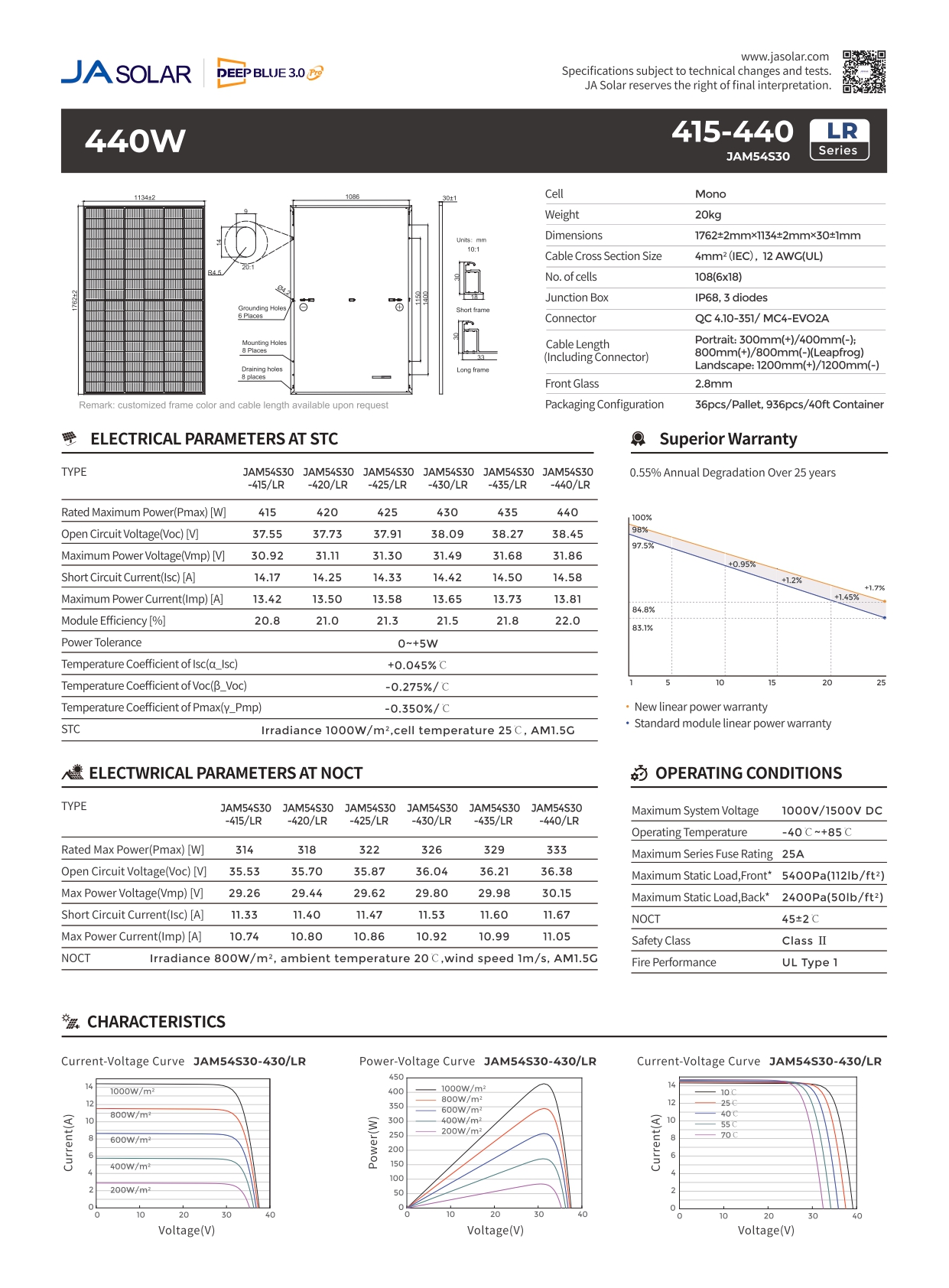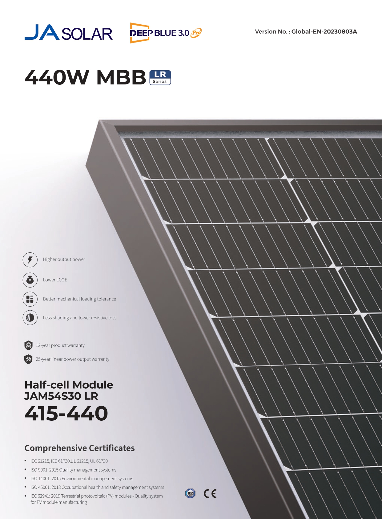 Panel Solar JA Solar Mono de 425W. Modelo 'Black Frame'